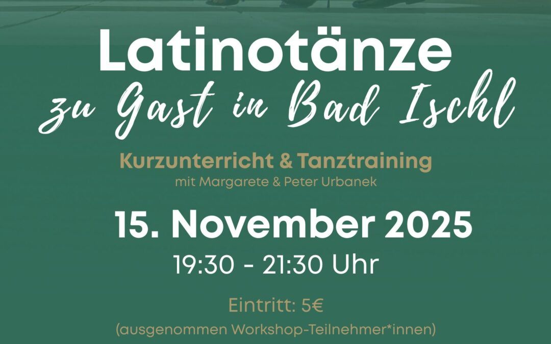Was? Tanzen Sie im Salzkammergut gemeinsam mit Gleichgesinnten zu wunderbarer Tanzmusik. (Teilnehmer:Innen des Bachata-Workshops 15.-16.11.25 zahlen keinen Eintritt.)
